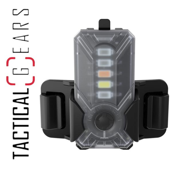 Die mitgelieferte Halterung mit Klett auf ihrer Rückseite ermöglicht eine schnelle und einfache Befestigung an Kleidung, Ausrüstung oder Helmen.